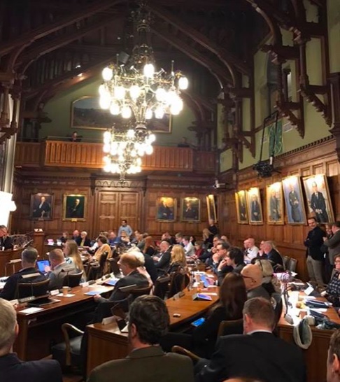 Den första och enda debatten på januaris kommunfullmäktige inleddes med socialdemokraternas motion kring att implementera barnkonventionen i stadens alla verksamheter. Maria Ward (S) inledde genom att berätta om barnkonventionen och sa att barnens röster måste få höras.