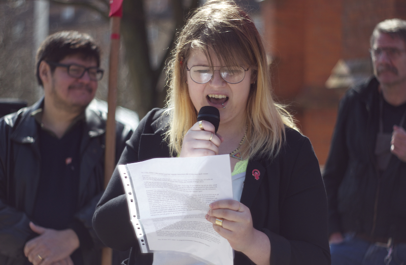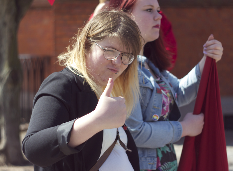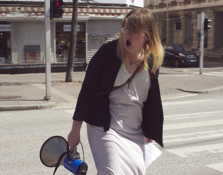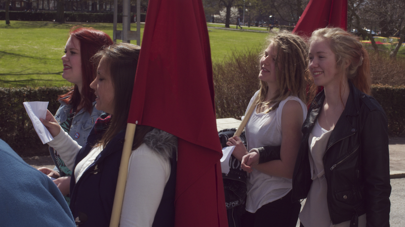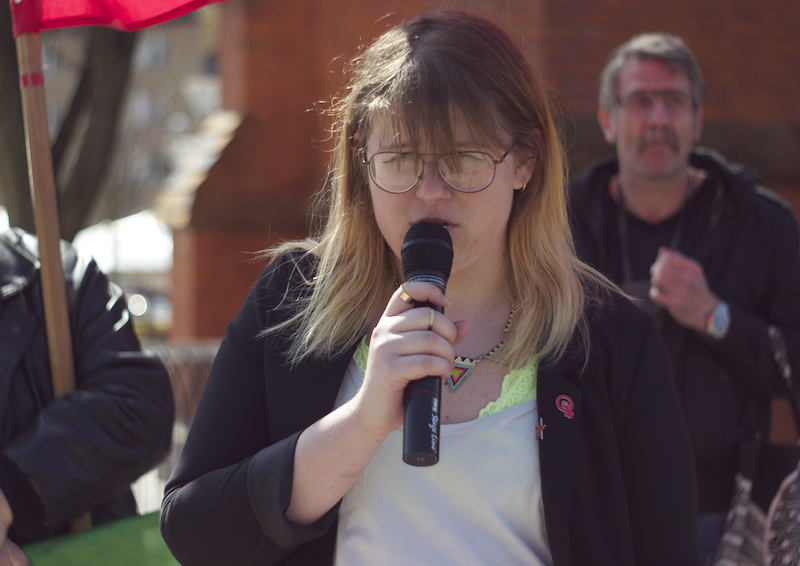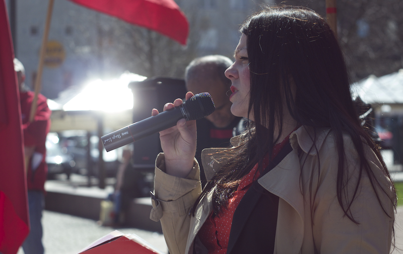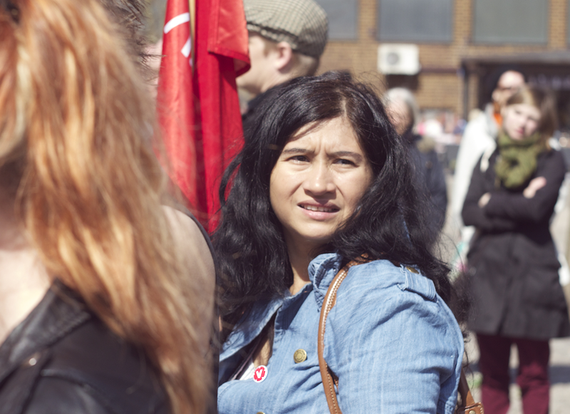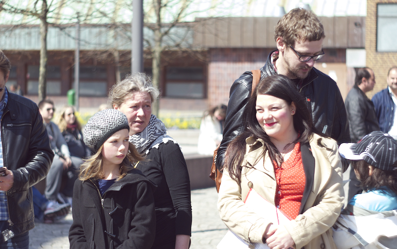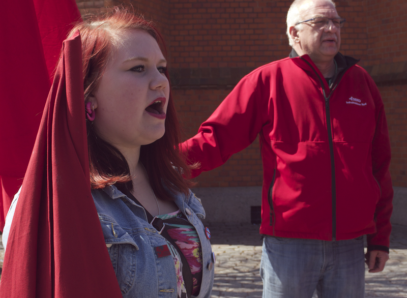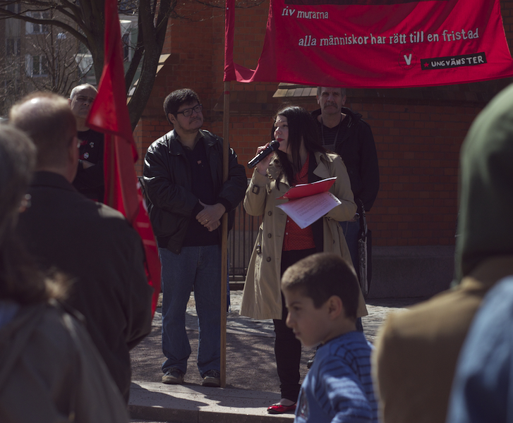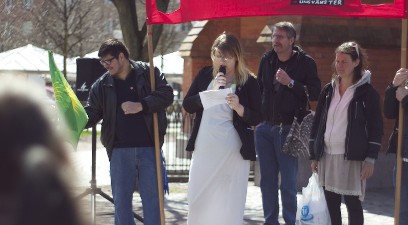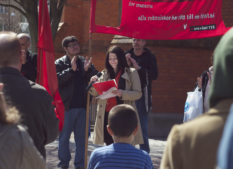 Därefter var det Anna Rubins tur, Anna Rubin sitter i partistyrelsen, hon talade om feminismen, om internationellt solidaritet och välfärd. Eylem Batak, från Internationella Kurdiska Kvinnoföreningen, talade om varför vi samlades varje första maj, om arbetarnas blod som rann på 30-talet och den kurdiska blod som rinner nu i Turkiet samt om fredsprocessen och hoppet om en varaktig fred med rättvisa och frihet. Till sist talade Ilda Kahrimanovic, Ungvänstersordförande, om sexismen, om patriarkatet, om hur människor diskrimineras varje dag på grund av sin sexuella läggning, sin kön, färgen på deras hudar eller hår.